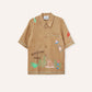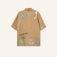 The Aleta shirt is a unisex piece with a boxy fit and short sleeves, available in three different colorways, each with unique embroidery. One version features delicate cornflowers, wheat, and wildflowers, while another showcases an intricate fish design. The third option, in light brown, is adorned with playful embroidery of snakes, mushrooms, snails, and other whimsical creatures.